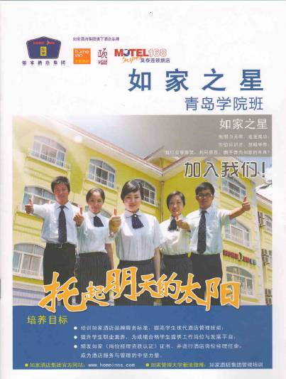 7月5日上午,“如家之星-青岛公司班”成立仪式在公司实训中心多功能厅举行,从公司2011级酒店管理专业中报名选拔的80位同学成为 “如家之星-青岛公司班” 第一期学员。如家酒店集团管理大学董事长包小阳、如家山东区域总经理李军、公司常务副经理张志东、副经理陈秋、教务处处长刁洪斌,以及二级公司的相关教师共同参加了成立仪式。 bv伟德国际体育常务副经理、如家酒店集团--bv伟德国际体育战略合作工作委员会主任张志东经理首先致辞,张经理在讲话中指出,如家之星-青岛公司班的成立是校企共建的又一次推进,这种“校企合一,前院后店”的培养模式是一种全新的员工培养模式,有利于实现企业、公司与员工的三方共赢,以“如家之星青岛公司班”的成立为契机,带动和推动各专业人才培养工作创新,以深入的校企合作、工学结合与完善的服务管理,帮助员工尽快成长为合格的职业人和管理者,为社会、为企业培养合格、优秀的高素质管理服务人才。如家酒店集团管理大学包小阳董事长介绍了本次项目培养目标,以及如家酒店集团为员工定制的职业规划,包小阳董事长表示,希望继续与公司强强联手,校企合一,双方在员工和员工的培养上有许多共同点,相信在双方和合作下,处于如家第二次腾飞和全国酒店业飞速发展的时期,一定能把如家之星青岛公司班的同学培养成合格的中层管理人员。第一期“如家之星青岛公司班”负责人如家资深经理左清华老师、班主任代表毛安老师、员工代表分别围绕培训计划、“1+5+1+5”的工学交替培养模式、以及班级管理和员工职业发展进行了发言。 最后,如家管理大学培训总监王华峰与左清华老师学员互动交流,就同学们感兴趣的问题作出了解答。 【新闻连线】今年四月,公司与如家酒店集团签署战略合作协议约定,从今年开始,公司每年将定向培养100名左右如家酒店集团未来经理人。校企双方将围绕实训基地建设、如家班开展、成教公司组建、顶岗实习安排展开深度校企合作,按照如家酒店集团店长培养体系,由校企双方共同制定人才培养方案,共同制定课程标准,联合开展公司产品和技能培养,联合实施教学管理和综合考核,实施“1+1+1”的人才培养模式。员工第一年在公司学习公共基础知识,重点开展体验型实习、企业文化认知、体验岗位和培养敬业精神的学习;第二年在如家酒店集团门店进行专业顶岗实习,突出加强专业综合应用、价值观形成、零距离上岗培养;第三年在校企共建实训基地(如家酒店青岛酒店管理职院店)进行管理提升,参加项目经营管理,重点从实训基地经营管理、储备店长管理能力、职业规范养成等方面加以培养。同时,校企双方合作采用“共同出资、共同建设、共同管理、共同使用”的原则共建了校内生产性实训基地——如家酒店公司店,该实训基地集教学、经营、员工培训、科学研究于一体,建有大堂、电梯厅、走廊、餐厅、展厅、会议室等设施设备,具备对外营业功能。战略合作协议同时约定可以以成教的形式面向社会公开招生,招生计划由校企双方共同制定,对完成人才培养方案既定学习任务的学员颁发国家认可的成教大专文凭。 如家酒店集团是纳斯达克上市企业,旗下拥有干净温馨的如家快捷酒店、时尚个性的莫泰168酒店、涉外商务型和颐酒店三大品牌,覆盖全国30个省250座城市拥有1500多家酒店18万床位,规模居经济型酒店中国第一、亚洲第一、世界第八。