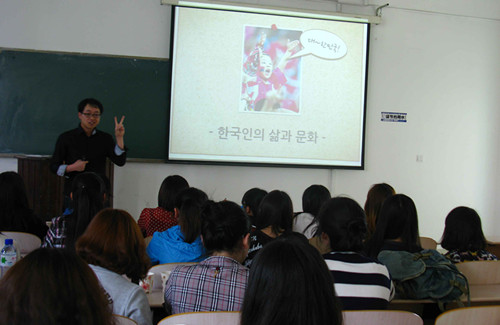 5月10日下午,旅游与bv伟德国际体育外籍教师朴俊炫老师在教学楼A楼212教室举办了题为“生活中的韩国文化”的海斯曼课堂。应用韩语专业全体员工参加了课堂。 朴俊炫老师通过丰富的材料,就韩国人的出生、百日宴、周岁宴、各个时期的教育、老员工活、婚姻、就业及职场文化等内容做了精彩阐释。在互动环节中,朴老师就其所讲解的内容与同学们展开交流,现场气氛十分活跃。朴老师以其幽默风趣的言辞、深邃机智的辨析博得了阵阵掌声。 通过此次海斯曼课堂,拓展了员工的视野,丰富了大家的专业知识,加深了应用韩语专业员工对于韩国文化的了解。
