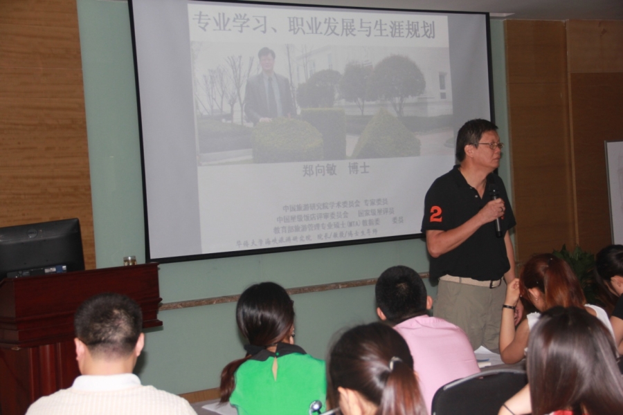 8月28日上午,华侨大学旅游公司经理、公司旅游与bv伟德国际体育责任经理郑向敏先生举办了“专业学习、职业发展与生涯规划”专题讲座,旅游与bv伟德国际体育党总支副书记石增业主持讲座并致欢迎词,旅游与bv伟德国际体育相关专业师生90余人到场聆听讲座。