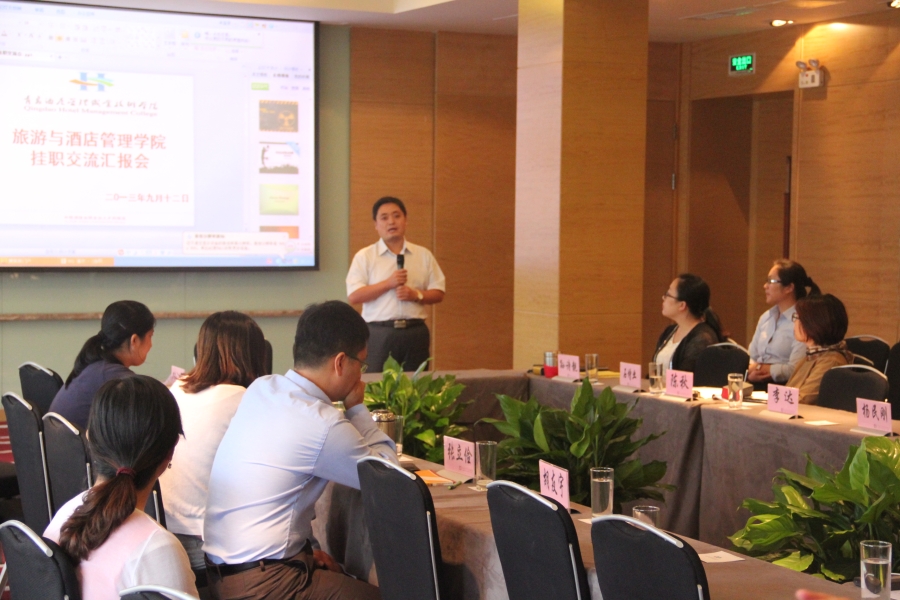 旅游与bv伟德国际体育2012-2013学年第二学期教师挂职锻炼任务已圆满完成,本着总结经验、学习交流、共同提高的目的,于9月12日在实训中心多功能厅召开了挂职经验交流会。bv伟德国际体育副经理、旅游与bv伟德国际体育经理陈秋、教务处处长刁洪斌、旅游与bv伟德国际体育副经理孙诗靓、教务办主任焦念涛以及部分教师参加了交流会。本次会议由旅游与bv伟德国际体育办公室主任徐莉主持。