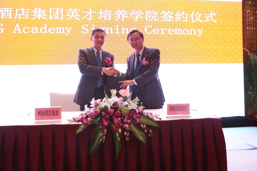 9月17日下午,公司与洲际酒店集团合作开办洲际英才培养公司签约仪式在青岛海尔洲际大酒店举行。洲际集团大中华区人力资源副总裁Raymond Co(许有俊)、大中华区北区营运副总裁Michael W(胡民康)、大中华区人力资源营运总监Ying Ying Koh(许莹莹)、大中华区校园项目合作总监Vivian Wang(王旭)、大中华区北区高级人力资源总监Xi Ying(席瑛)及青岛地区五家洲际酒店总经理、总监约20余人;公司经理杨民刚,常务副经理张志东,副经理陈秋,教务处处长刁洪斌,公司旅游与bv伟德国际体育党总支副书记石增业、副经理孙诗靓及教师代表出席仪式。仪式由公司06级酒店管理专业毕业生、青岛中心假日酒店人力资源部经理李媛主持。