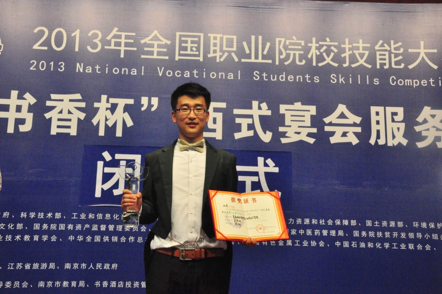 617日18日,2013年全国职业院校技能大赛高职组“书香杯”西式宴会服务赛项在南京举行,公司酒店管理专业的王茂林同学参赛,并凭借扎实的专业操作技能,一举取得该赛项一等奖。