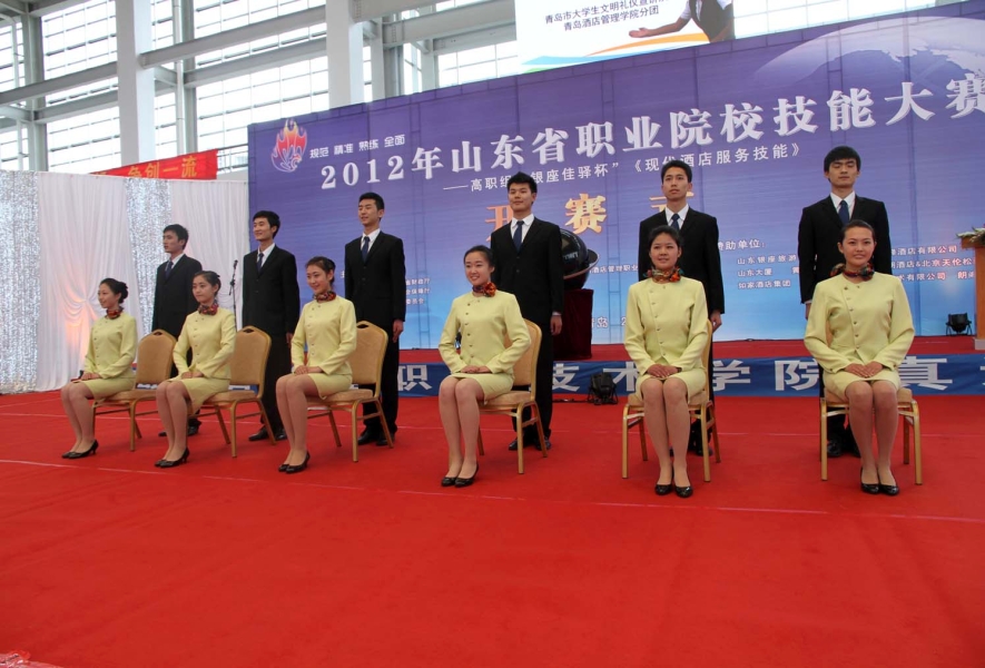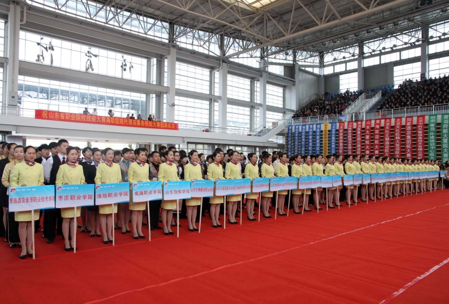 4月19日下午, 2012年山东省职业院校技能大赛高职组现代酒店服务技能竞赛开赛式在公司体育馆隆重举行。教育部职成司教产合作处处长林宇、山东省教育厅副厅长宋承祥、省教育厅高教处处长宋伯宁、省教育厅高教处副处长张琳、省职业院校技能大赛组委会副秘书长陈红康、市委高校工委副书记王金生、鲁商集团副总经理、集团教育集团筹建办主任宋文模、集团教育集团筹建办副主任梁乃计、大赛总裁判长、教育部旅游管理教学指导委员会主任郑向敏、bv伟德国际体育党委书记纪家胜、经理杨民刚、党委副书记于敏、常务副经理张志东、纪委书记王建宝、副经理徐胜来、副经理商士海、经理助理崔学勤、副经理陈秋出席了开赛式,青岛市旅游局领导,各兄弟院校的领队、参赛选手,国家、省、市级媒体的朋友,以及来自加拿大的职工参加开赛式,开赛式由省教育厅高教处副处长张琳主持。