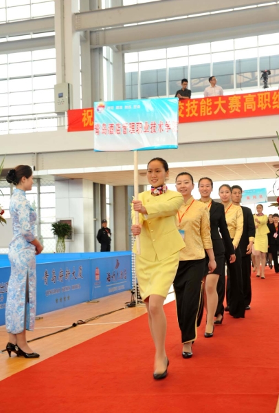 本次竞赛共有来自全省高职院校的33支代表队,将在此开展为期四天的竞赛。此次竞赛由设计接待方案、阐述接待方案、实施接待方案和英语口语测试四个项目组成,所有裁判均来自企业和参赛队兄弟院校教师组成的裁判库。此次开赛式充分展现了现代酒店服务业的职业特点。