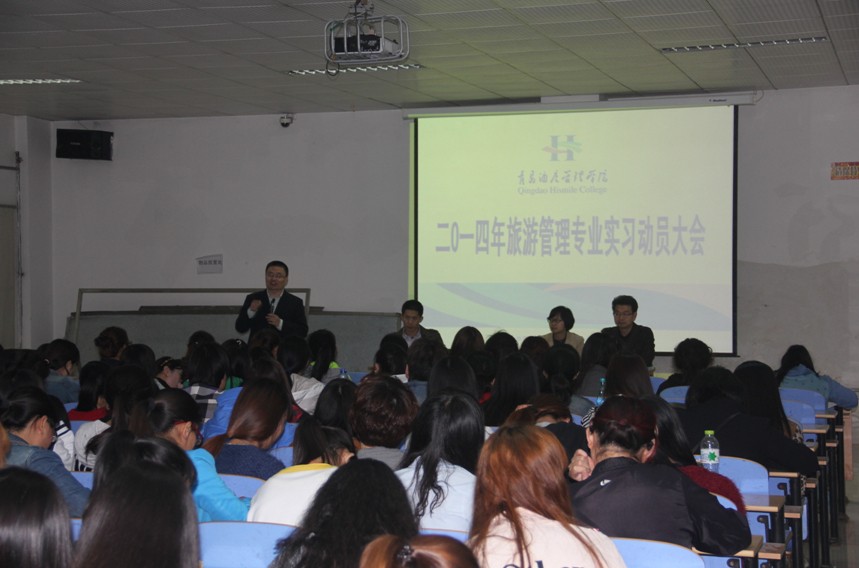 4月22日晚,旅游管理专业顶岗实习动员大会暨师生交流会在学术楼101教室隆重举行。旅游管理教研室主任石媚山、旅游与bv伟德国际体育教务办实习管理老师崔永聪、旅游管理专业实习指导老师康传德、实习班级班主任李艳、部分专业教师及2012级旅游管理专业全体同学300余人参加会议。会议由旅游管理专业实习指导教师康传德主持。