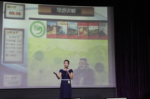 全国职业院校技能大赛导游服务赛项,分为普通话导游和英文导游两个组别。比赛包括导游讲解、即兴演讲、知识问答、综合理论考试、才艺展示五大环节,满分100分,其中导游讲解60分、即兴演讲10分、知识问答5分、综合理论考试15分、才艺展示10分。普通话导游服务组每省(自治区、直辖市)最多3名选手,英语导游服务组每省(自治区、直辖市)最多3名选手,全部参赛选手均是在各省选拔赛中脱颖而出的优秀选手。公司取得中文导游名额1个,英文导游名额1个,为山东省内获得该赛项参赛名额最多的院校,公司经理助理刁洪斌还担任了山东省参赛队的领队。