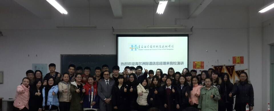 2015年1月21日,青岛海尔洲际酒店总经理Tonga Unan来公司为洲际英才班的全体同学讲学,本次讲座系旅游与bv伟德国际体育“职业经理人进课堂”系列活动之一,为洲际集团职业经理人进课堂讲座规格最高的一次。