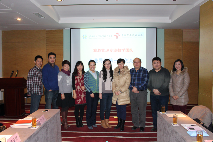 交流活动现场,刁洪斌介绍了过去一年公司的发展情况,重点回顾了双方共建《旅行社计调实务》课程,协会选拔16位企业老总担任课程主讲教师,开放企业资源给专业老师等活动,对于双方自合作以来取得的积极成果表示祝贺和感谢。随后,杨栋带领五位教师与五位企业导师就如何利用导师制为契机推动青岛市旅行社协会与公司在教学、实习、社会服务等方面的交流与合作进行了研讨。经过近三个小时的交流,最终双方在企业实践案例集的编写、员工顶岗实习、教师企业锻炼、校企横向课题等方面形成一致意见及具体方案,效果显著。