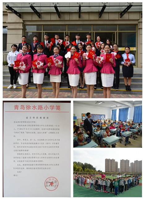 10月13日,旅游与bv伟德国际体育志愿者团队受邀去往李沧区徐水路小学参加了以“我的长征路,星星火炬情”为主题的建队日主题活动,25名志愿者受聘为徐水路小公司外中队辅导员并接受聘书。