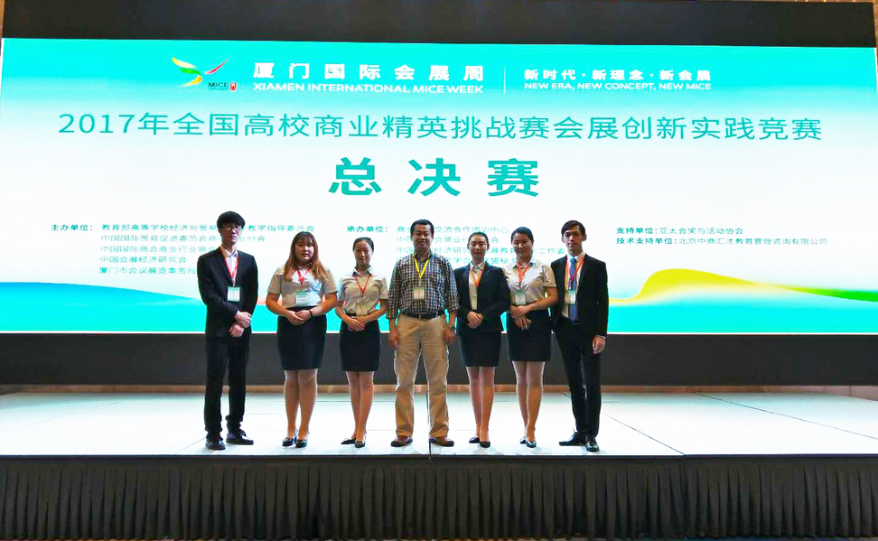 为贯彻《国务院关于进一步促进展览业改革发展的若干意见》中关于“加强人才体系建设”精神,加快培养适应会展业发展需要的技能型、应用型、复合型专门人才,教育部高等公司经济与贸易类专业教学指导委员会、中国国际贸易促进委员会、中国会展经济研究会共同主办了2017全国高校商业精英挑战赛会展创新实践竞赛,2017年11月9日本次竞赛在厦门圆满落下帷幕!