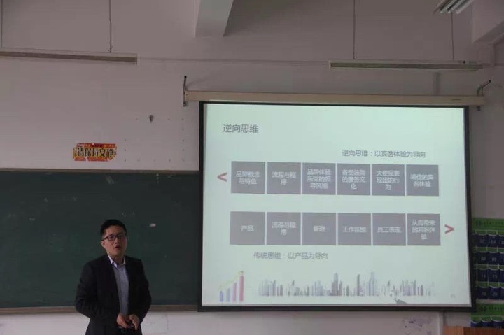 刘杨给同学们详细讲解了国际酒店的发展历史,结合雅高、洲际等国际酒店集团的企业文化,在当前新科技进步的背景下分析服务业的发展趋势,拓展了同学们以宾客体验为主导的逆向思维。
