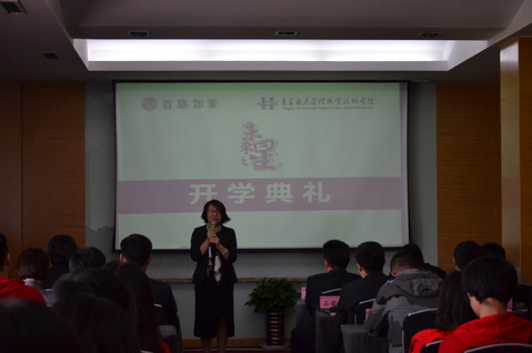 本网讯(旅游与bv伟德国际体育 毛安)5月8日,首旅如家“未来之星”店长班开学典礼暨首旅如家酒店集团校园活动月开幕式在公司酒店管理实训中心多功能厅举行。首旅如家酒店集团副总裁温凤兰,公司经理姜玉鹏、副经理刁洪斌出席开幕式。