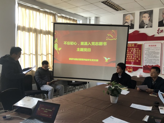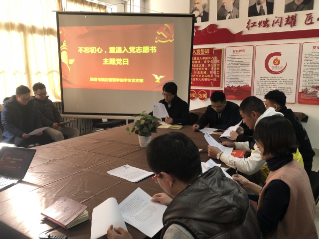 本网讯(旅游与bv伟德国际体育 李艳)为贯彻党的十九大关于“不忘初心、牢记使命”的要求,12月24日下午,旅游与bv伟德国际体育员工党支部在党员活动室举行“不忘初心,重温入党志愿书”主题党日活动,员工支部9名党员同志参加活动。