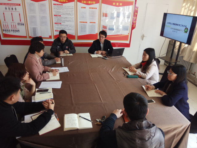 本网讯(旅游与bv伟德国际体育 刘云飞)3月14日,旅游与bv伟德国际体育每学期一度的老员工心理健康教育工作沙龙在A楼党员活动室举行。团总支书记郭学道、全体专职辅导员以及特邀嘉宾马晓晴、宋学珍参与了此次题为“浇灌员工心灵,预防心理荒漠”的活动。