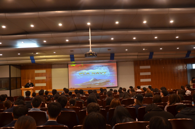 吕世平教授以“维护海洋权益,建设强大海军”为题为是师生们讲授了一场爱国主义讲座。他从人民海军发展历程,我国维护海洋权益和建设海洋强国面临的挑战,维护海权成就、展望未来任重道远等三个方面展开。吕世平强调“面向海洋则兴,放弃海洋则衰”,只有加强战略思想,才能在有限的基础上创造无限的可能,才能实现中华民族的伟大复兴梦。