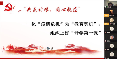 本网讯(bv伟德国际体育张妍)2月22日,新学期开学伊始,在防控新冠肺炎疫情特殊时期,bv伟德国际体育党总支通过线上视频会议平台,开展“化疫情危机为教育契机”主题党日活动