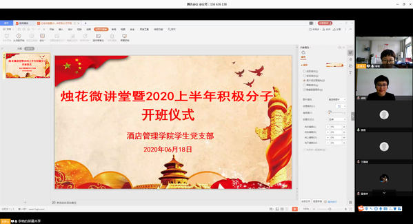 本网讯bv伟德国际体育 李艳618日下午,bv伟德国际体育通过线上形式举行烛花微讲堂暨2020上半年入党积极分子开班仪式,bv伟德国际体育党总支副书记徐莉、团总支书记王茜及62名入党积极分子参加会议。