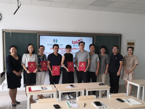 酒店管理副经理尹萍、酒店管理专业主任王光健、中澳班全体同学等相关人员参加开班仪式。
