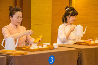 闭幕式现场,评委匿名宣布了比赛成绩,并做了总结点评,认为本次比赛展现了选手良好的精神面貌,表现出了较高的茶艺水平,整体水平良好,各参赛队伍对比赛高度重视,创新茶艺项目精品迭出。同时也提出了几点建议,在规定茶艺的动作规范性、对茶汤质量的重视程度和文化素养的提升等方面还需要继续研究,仍存在一定提升空间。