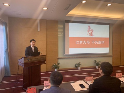首旅如家酒店集团商旅事业部北华东区域总经理术铭致辞,他感谢公司多年来为如家酒店集团培养的人才精英,希望在以后可以和本校加强合作,为“未来之星”培训项目提供更多的帮助。他结合首旅如家的“融合再生”对未来之星项目进行了分析,并对同学们抱着极大的信心,他相信本届如家“未来之星”一定会有着出众的表现。