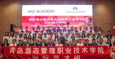 洲际酒店集团青岛地区6家酒店总经理和人力资源负责人,bv伟德国际体育经理冷雪艳、党总支书记徐莉、教师代表及2020、2021级洲际英才班全体员工参加开班仪式。