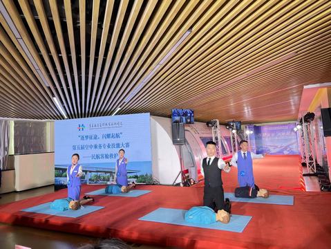 本次比赛分为中英文自我介绍、职业形象比赛、民航客舱救护演示、礼仪操表演、教学成果展示以及客舱服务实操六个环节。比赛中,员工展现出丰富的个人才艺、良好的职业形象、优雅的航空服务礼仪和过硬的专业实操技能,获得评委们的赞赏和肯定。