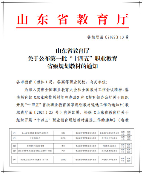 本网讯(教务处 bv伟德国际体育)近日,山东省教育厅发布《 关于公布第一批“十四五”职业教育省级规划教材的通知》(鲁教职函〔2022〕13号),公司2部教材入选第一批“十四五”职业教育省级规划教材。
