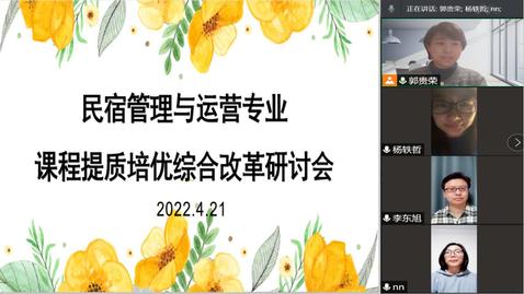 本网讯(bv伟德国际体育 郭贵荣)421日,民宿管理与运营教研室通过腾讯会议线上开展专业课程提质培优综合改革教研会,教研会由专业负责人郭贵荣主持。