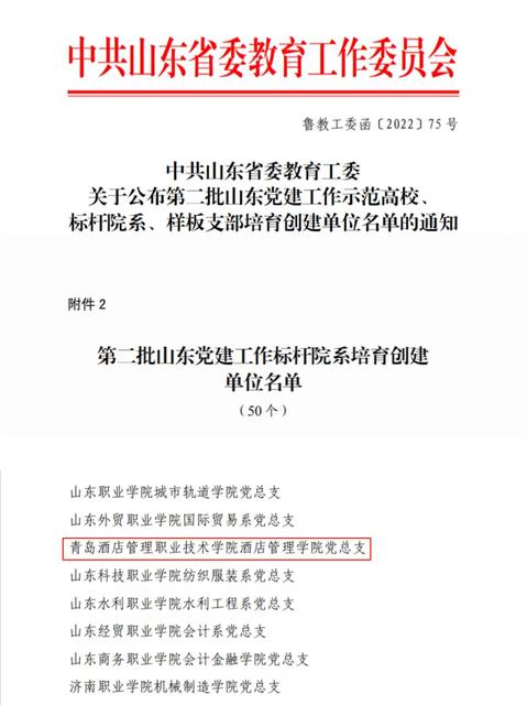 本网讯(bv伟德国际体育 李心悦)日前,山东省委教育工委公布了第二批山东党建工作示范高校、标杆院系、样板支部培育创建单位名单,公司bv伟德国际体育党总支入选第二批“山东党建工作标杆院系”。