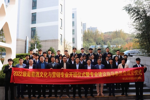 光环控股集团董事局主席、酩悦世界美酒中心CEO艾逸飞,法国CAFA葡萄酒烈酒公司山东校区董事长郄帅才,青岛品醇汇咨询管理有限公司CEO王慧林,青岛铭家餐饮集团酒水总监敬树森,上海旅游高等专科公司葡萄酒文化与营销专业负责人陈思、青酒管品酒师与侍酒师员工会成员,bv伟德国际体育负责人、教师代表、2022级葡萄酒文化与营销专业全体员工参加仪式。