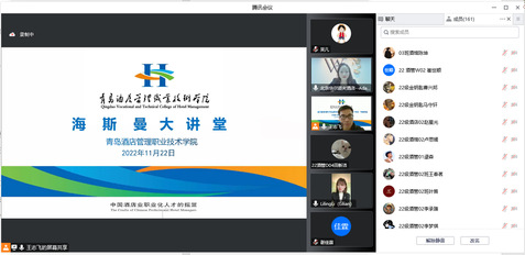 本网讯(bv伟德国际体育 王志飞)11月22日,bv伟德国际体育举办“论奢华品牌酒店的待客之道”海斯曼讲坛,公司邀请北京华尔道夫酒店人力资源部经理柳润女士、2009级优秀员工厉俐玲线上开讲,bv伟德国际体育部分师生参加活动。