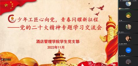 11月23日,bv伟德国际体育员工党支部开展“少年工匠心向党,青春闪耀新征程——党的二十大精神专题学习交流会”,22名党员发展对象和200余名入党积极分子同学参加。学习交流会围绕专家解读、青春领诵、青春分享三个环节展开。同学们一同观看思政专家解读党的二十大报告视频,纷纷发言分享感悟心得。大家表示将不辜负习近平总书记在二十大报告中对青年一代寄予的殷切期望,锚定目标、勉励自我,绽放青春力量。