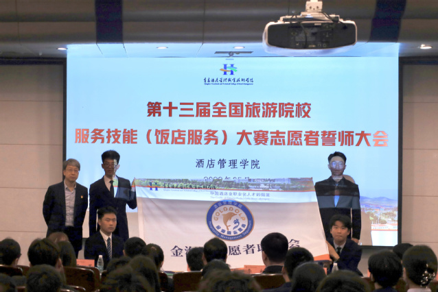 本网讯(bv伟德国际体育 秦余汶)5月6日,bv伟德国际体育在学术报告厅召开第十三届全国旅游院校服务技能(饭店服务)大赛“金海豚”志愿者誓师大会。副董事长宫恩龙参加会议。