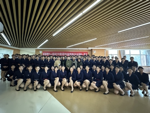 本网讯(bv伟德国际体育 李倩)11月12日,公司“1+X”民航空中服务(中级)职业技能等级认证考试在综合实训楼顺利举行,空中乘务专业160名员工参加此次认证考试。