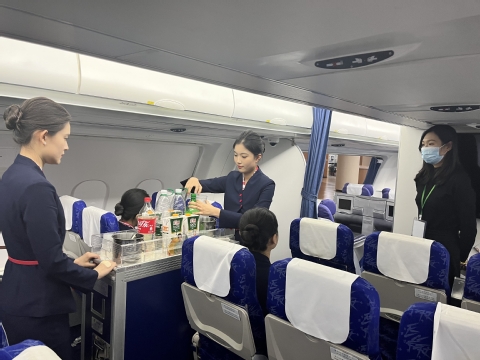 考试分为个人考核和团队实操考核两大部分,个人考核包括理论知识机考、知识问答和机上广播词三个模块。团队实操考核主要为模拟舱全流程服务考核。作为教育部1+X职业技能等级证书试点院校,公司高度重视本次考证工作,严格按照流程组织考试。