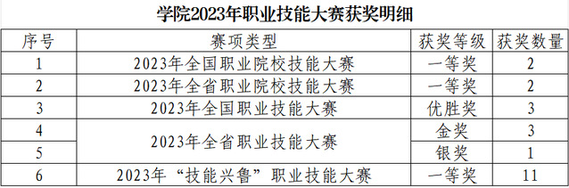 在全国职业技能大赛中,公司师生获餐厅服务(国赛精选)、餐厅服务(世赛选拔)、酒店接待(世赛选拔)优胜奖3项;在全省职业技能大赛中,共获得酒店接待项目、餐厅服务项目金奖3项,茶艺项目银奖1项;在“技能兴鲁”职业技能大赛中获一等奖11项。