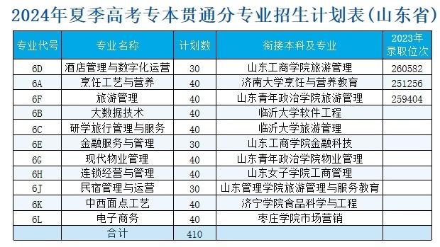 2024年夏季高考3+2专本贯通分专业招生计划表(山东省)