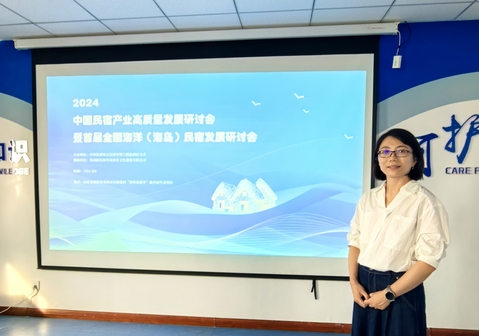 为贯彻落实全国旅游发展大会精神,着力推进海洋民宿⾼质量发展,为沿海地区民宿搭建交流与合作平台,同时助力荣成市海洋民宿产业发展,中国旅游协会⺠宿客栈与精品酒店分会于2024 年7月4日-5日在荣成市举办2024中国⺠宿产业⾼质量发展研讨会暨⾸届全国海洋(海岛)⺠宿发展研讨会。公司民宿管理与运营专业负责人李峰受邀主持会议专题报告环节并做题为《海洋(海岛)民宿研究综述》的主旨演讲,通过梳理大量文献资料,详细分析了国内外海洋(海岛)民宿的发展历程和国内外学者对海洋(海岛)民宿的研究角度、发现问题及经验总结等内容,为与会者深入了解国内外海洋(海岛)民宿的发展和汲取经验奠定了良好基础。