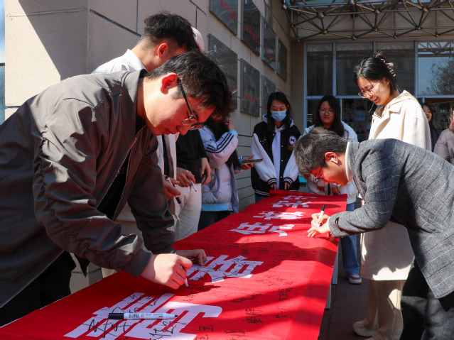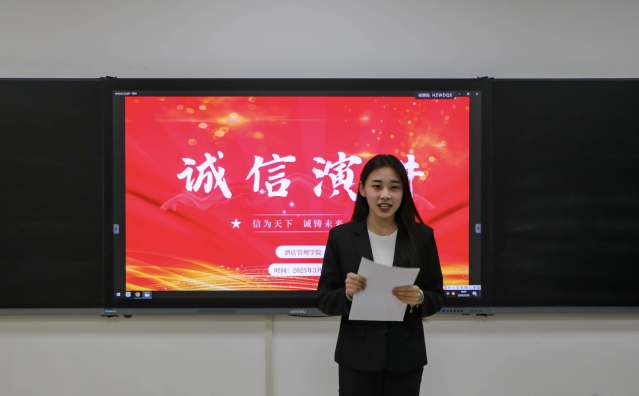 3月21日,bv伟德国际体育在酒管楼和西餐厅开展诚信教育签名仪式,旨在通过仪式感激发员工的自我约束意识,增强诚信观念。同学们在印有诚信标语的红色横幅上庄重签字,以表坚守诚信的决心。活动结束后,签字条幅悬挂于酒店管理公司楼前和校园主干道旁,营造诚信的校园氛围。