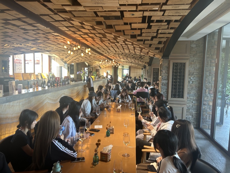 品鉴之余,葡萄酒文化与营销专业师生还与酒庄营销负责人展开座谈,探讨当前市场环境下葡萄酒品牌的突围之道。酒庄方面分享了如何借力产区故事、打造产品差异化、运用新媒体拓展消费场景等实战策略。同学们认识到,葡萄酒不仅是农产品,更是文化载体与情感纽带——如何将酿造背后的历史、风土与工艺转化为打动消费者的语言,正是专业学习的核心所在。这一环节让大家深刻体会到,“讲好故事”与“酿好酒”同样关键,也为专业学习注入了更多现实视角与创新意识。